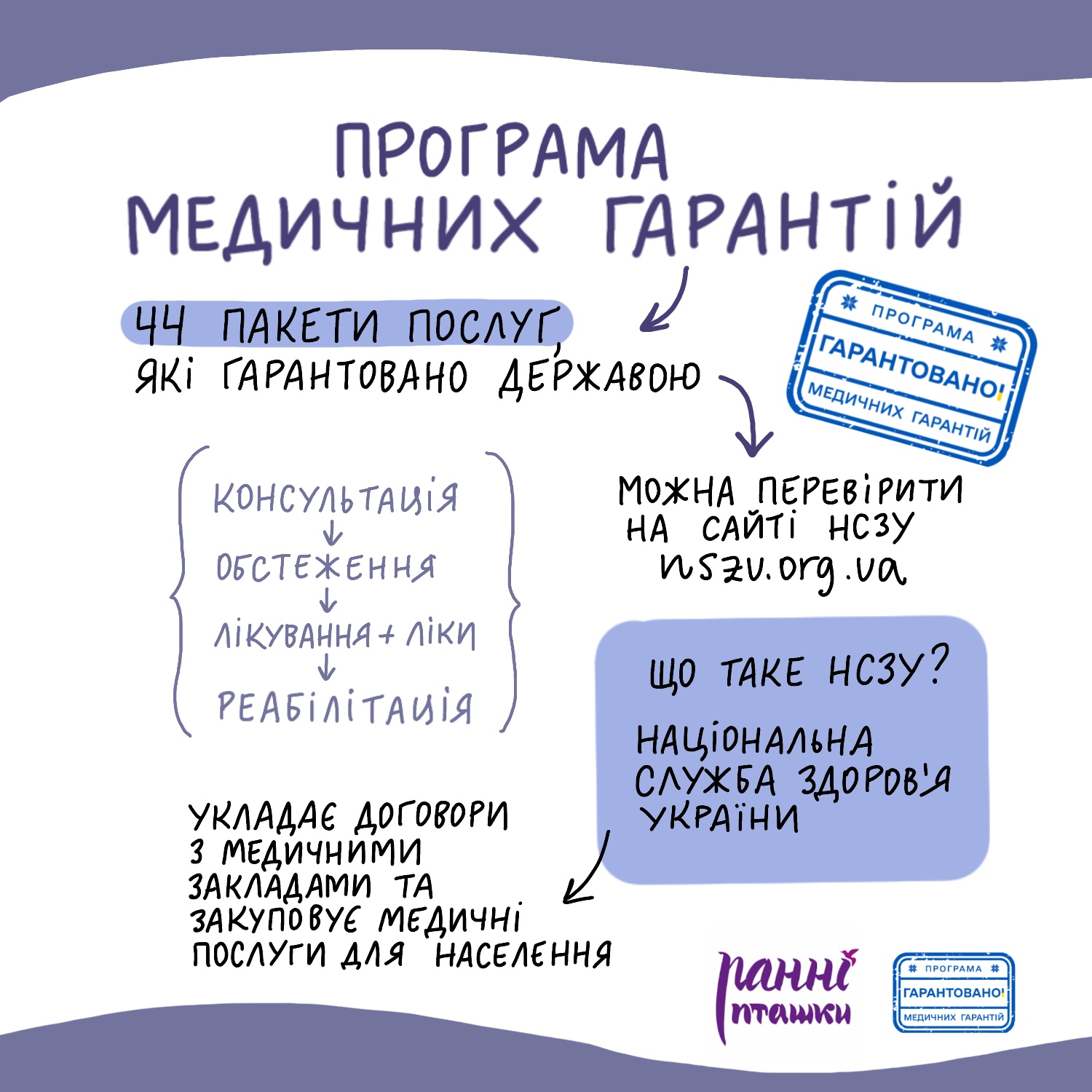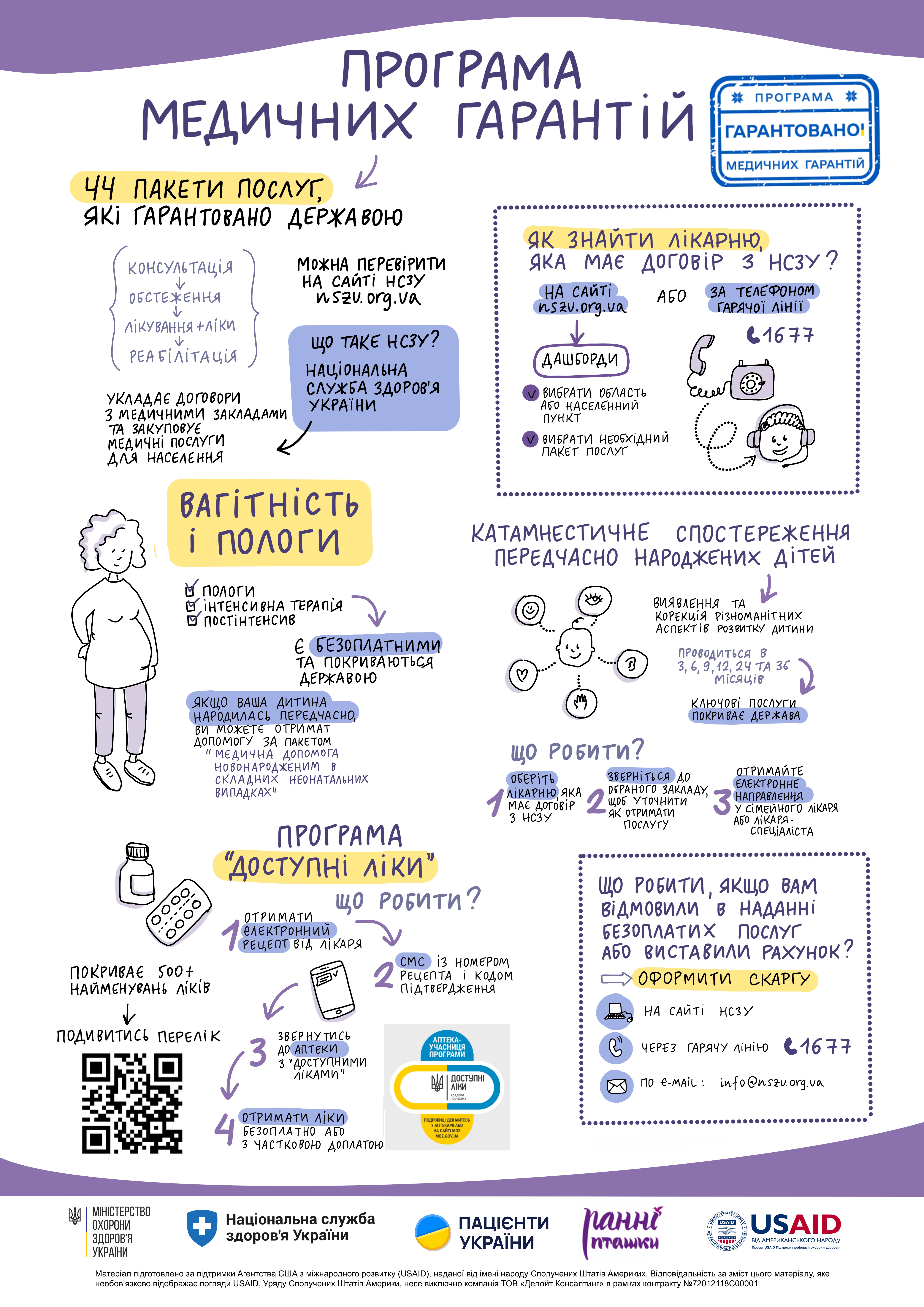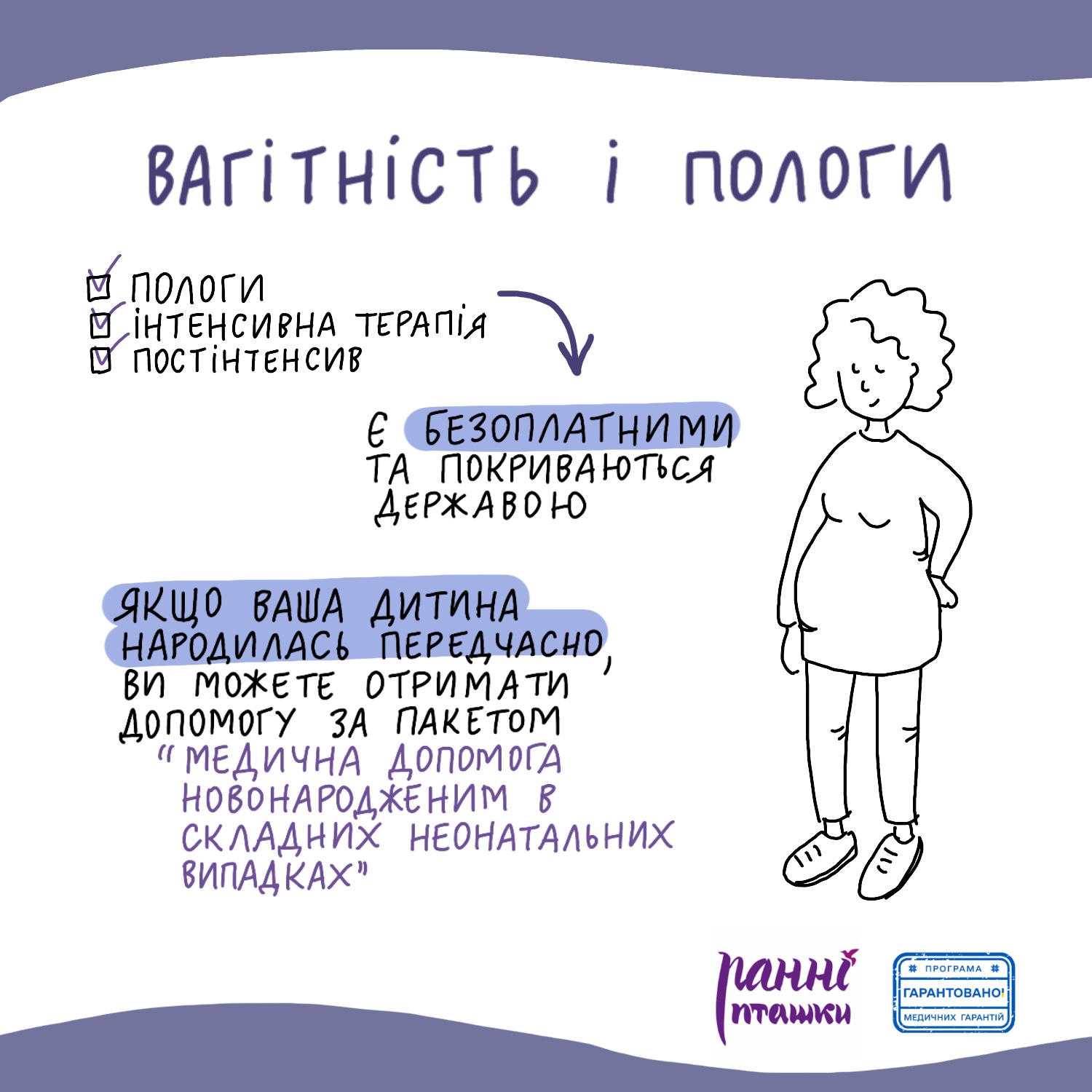 Free of charge healthcare servicesThe government guarantees free of charge medical services, included into healthcare guarantee packages of the NHSU. Childbirth, NICU, post-NICU, catamnestic observation – all these are free of charge and guaranteed by the government.